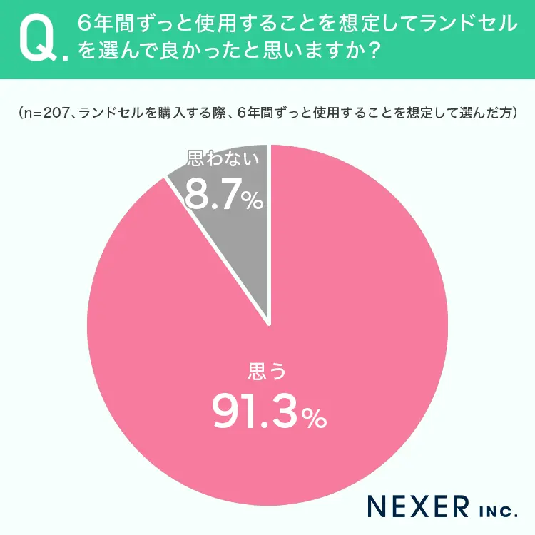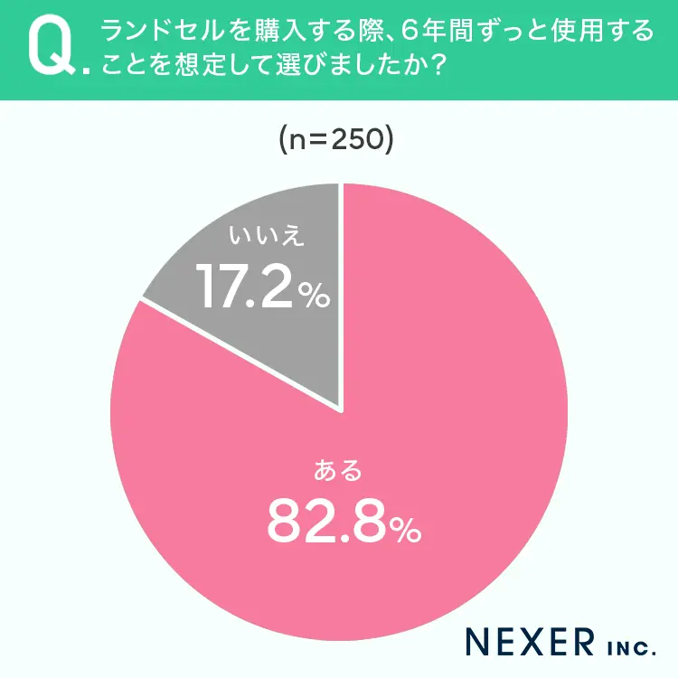 ランドセルを「6年間ずっと使用することを想定して選んだ」と回答した方は82.8%。