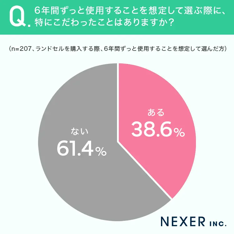6年間の使用を想定した場合、何にこだわって選んだのでしょうか。調査では38.6%の人が「特にこだわったことがある」と回答。