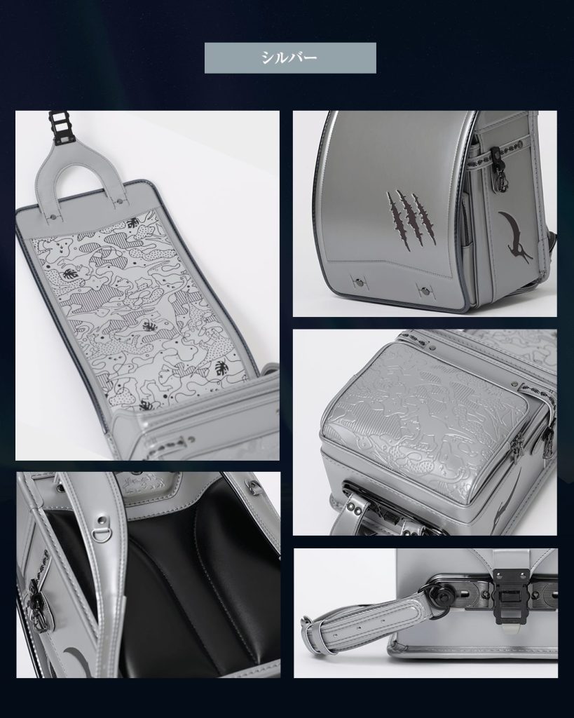 恐竜ランドセル「オーロラダイナソーランドセル」シリーズには、ゴールドとシルバーのランドセルが。恐竜のモチーフを引き立てるメタリックカラーが目に鮮やかで、人気のシリーズのひとつ。男女問わず背負えるデザインも魅力です。また、新色としてパールサックスも追加されています。