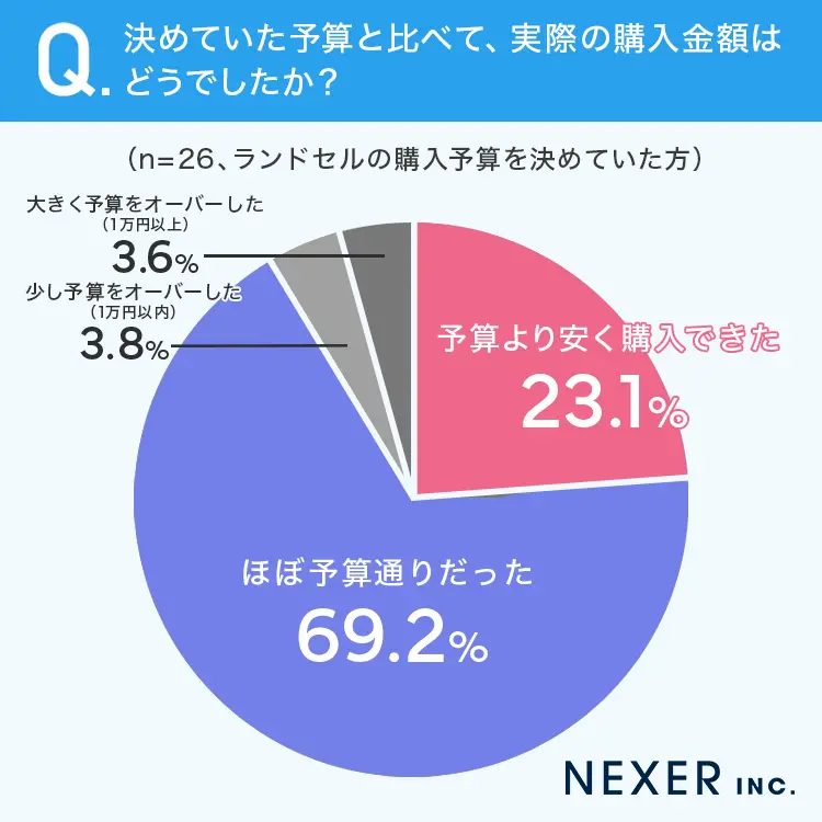 一方で、事前に予算を決めていた23.2%の家庭でも、実際の購入時には「ほぼ予算通り」だったのは7割を切る結果に。