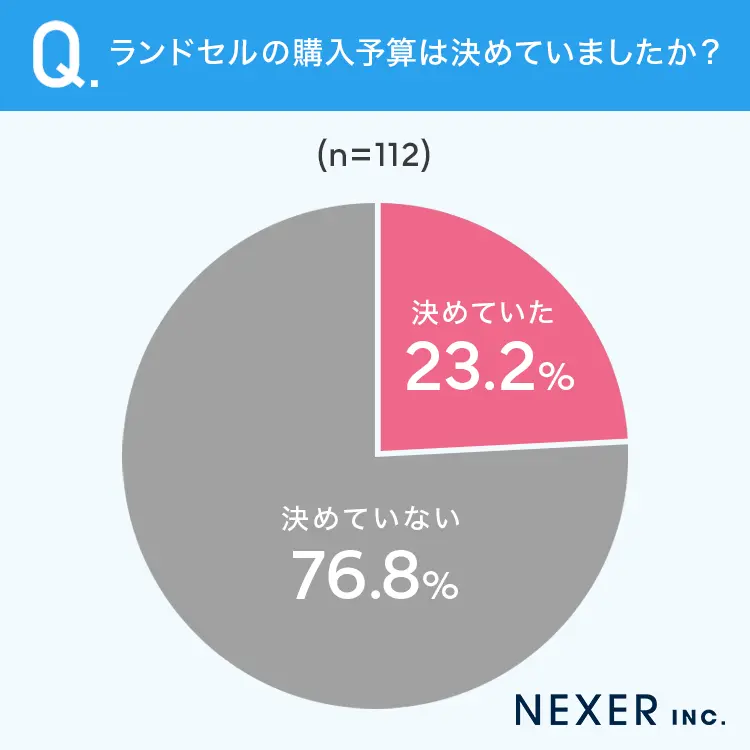 今回の調査で最も驚くべき結果がこちら。なんと76.8%ものママパパが、ランドセルの購入予算を事前に決めていなかったことが明らかになりました。