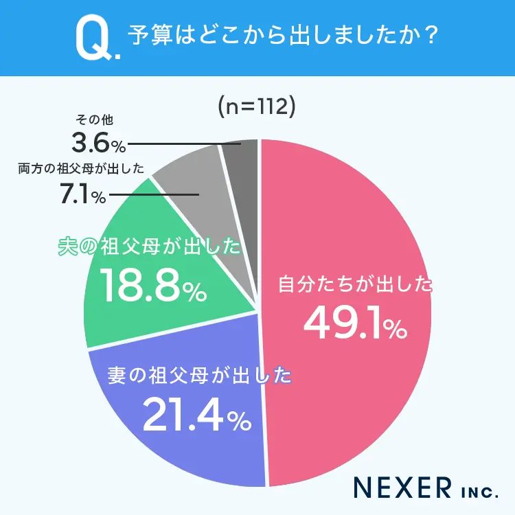 興味深いことに、予算の出どころについては約半数の家庭が「自分たちで負担」と回答。一方で、祖父母が援助してくれた家庭も合わせて約4割にのぼることが判明しました。